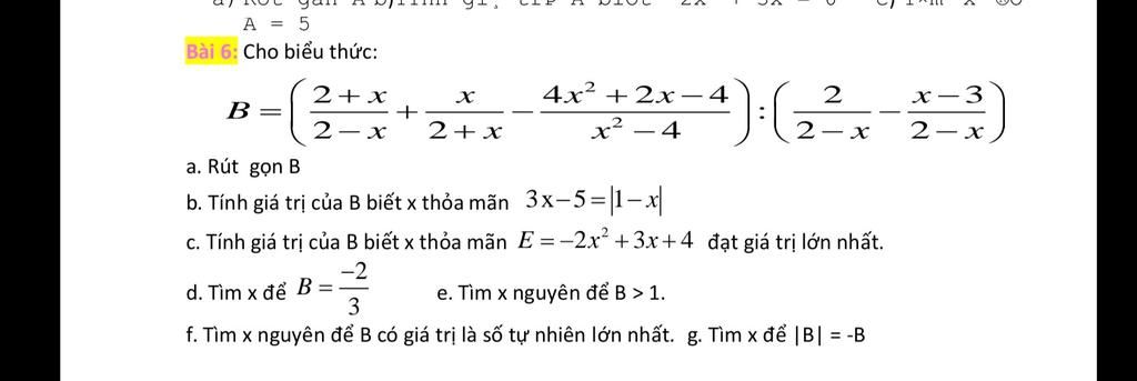 f. Tìm x nguyên để B có giá trị là ...