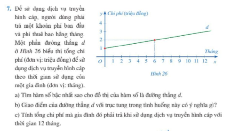$b)$ Giao điểm của đường thẳng $d$ với trục tung trong tình huống này có giá trị bằng khoản phí ban đầu khi sử dụng dịch vụ