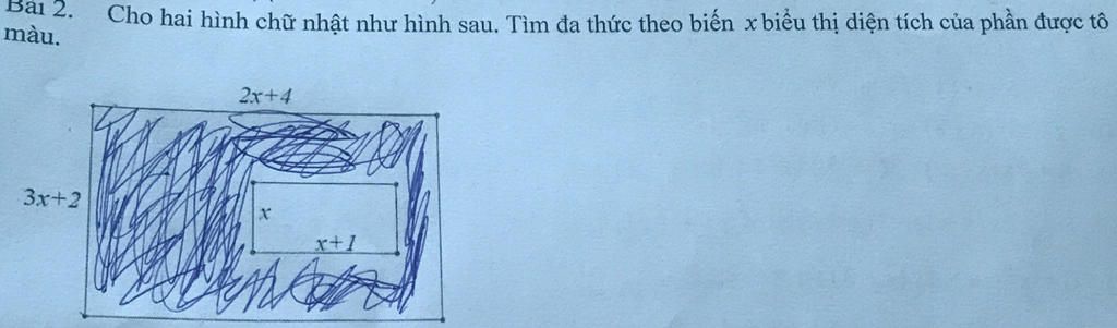 `=>` Vậy diện tích phần tô đậm là : `5x^2-15x+8(m^2)`