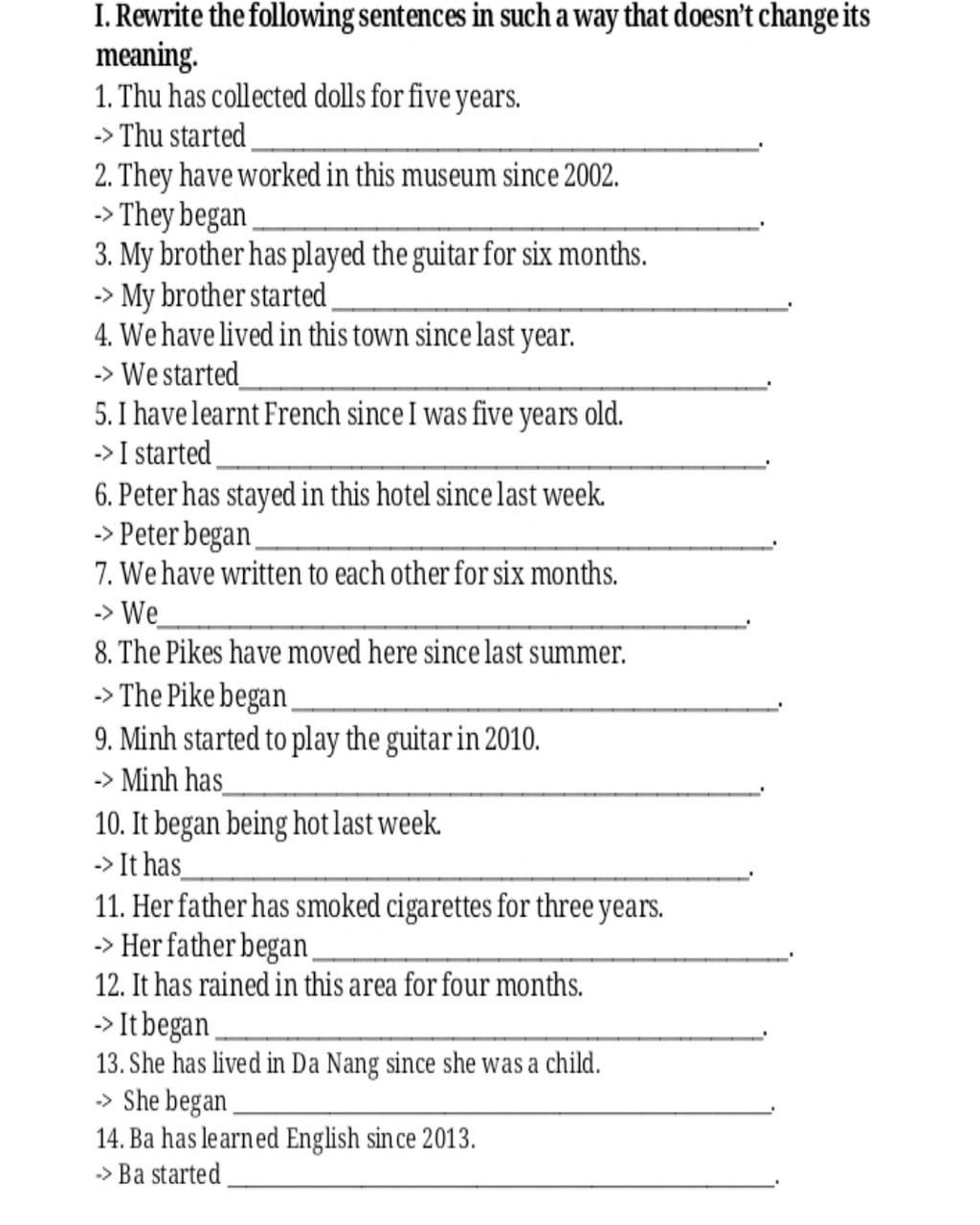 - S + started / began + to V / Ving + mốc thời gian + ago / mốc thời gian trong QK
