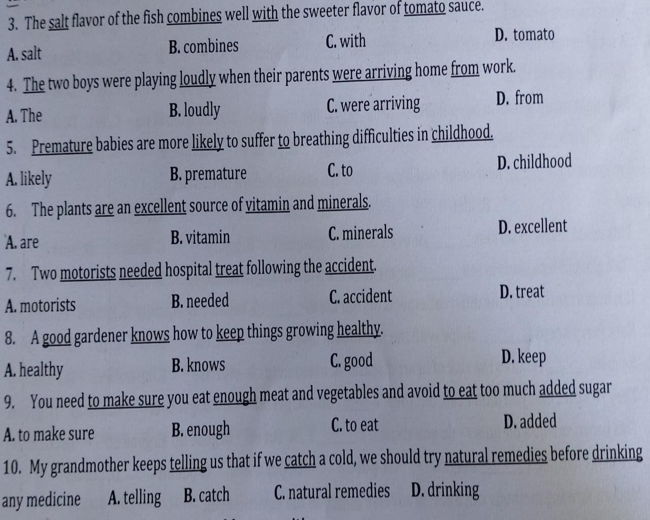 6. B (vitamin => vitamins vì hoa qua chứa nhiều loại vitamin khác nhau)