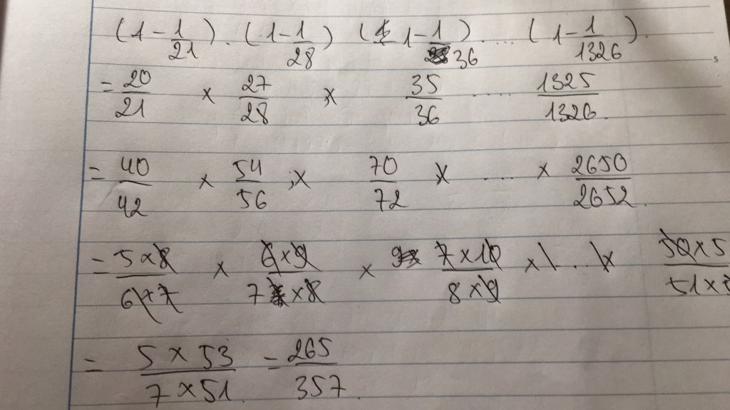 (1-1/21).(1-1/28).(1-1/36)......(1-1/1326)