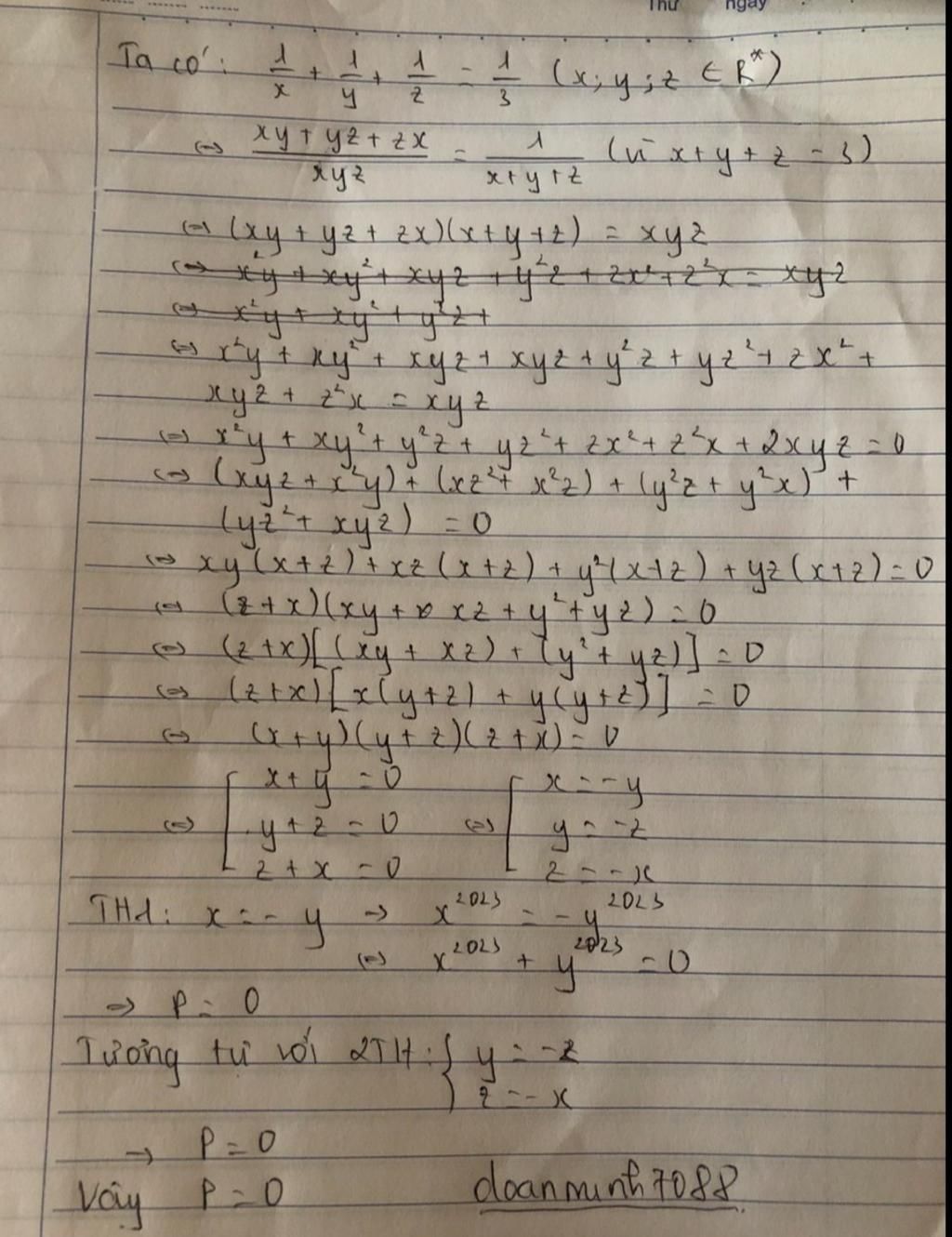 `<=> 1/x + 1/y + 1/z = 1/(x+ y + z)`