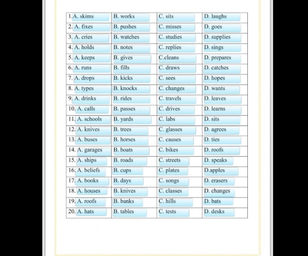 20. B phát âm là /z/ - còn lại là /s/