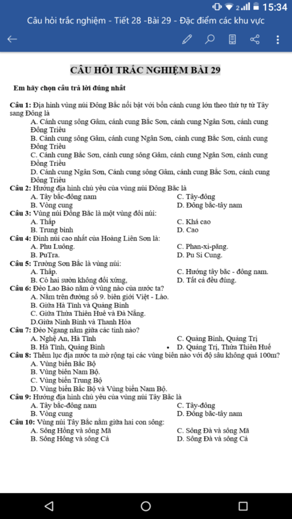 Câu 9: A. Tây bắc-đông nam