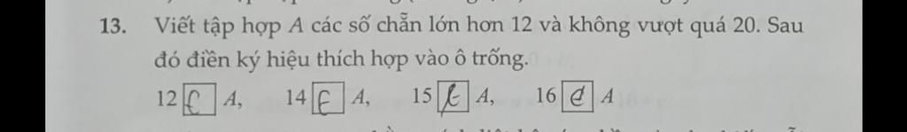 13.Tập hợp A các số chẵn lớn hơn 12 và không vượt quá 20