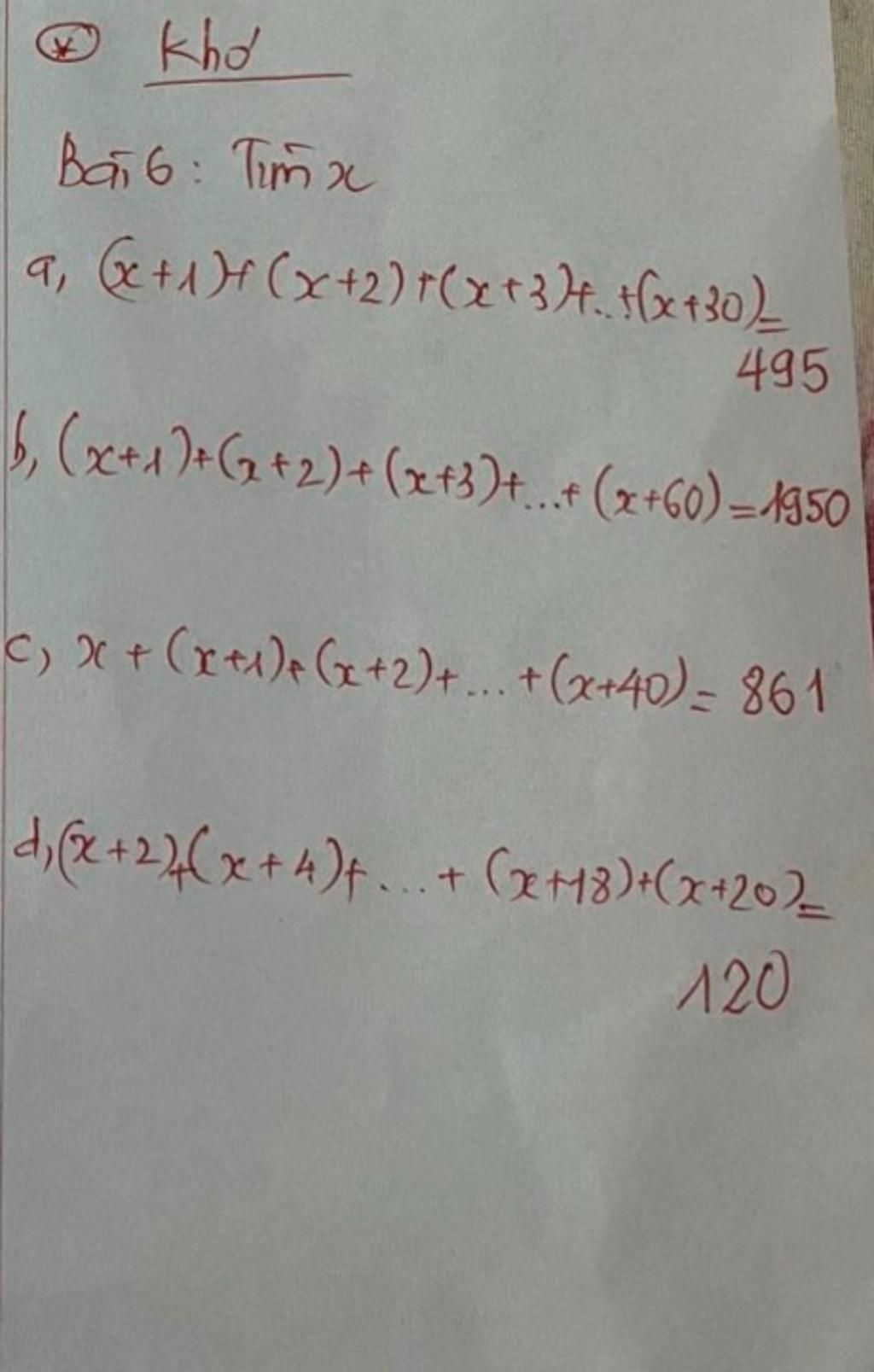 c) `x + (x + 1) + (x + 2) + ... + (x + 40) = 861`