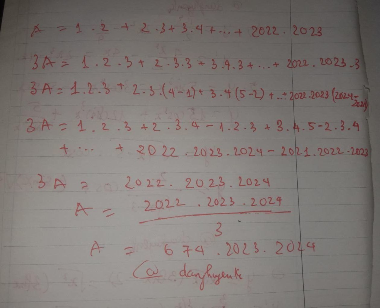 Đặt `A= 1.2+ 2.3+ 3.4 + ...+ 2022.2023`