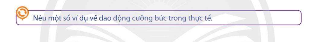 Kéo một con lắc lò xo rồi thả ra. Con lắc lò xo sẽ dao động tắt dần, bây giờ ta đặt một lực do tay ta tạo ra lên con lắc. Khi đó dao động này gọi là dao động cưỡng bức, do vật dao động phụ thuộc vào lực do tay ta tạo nên, tần số bằng tần số ngoại lực cưỡng bức.
