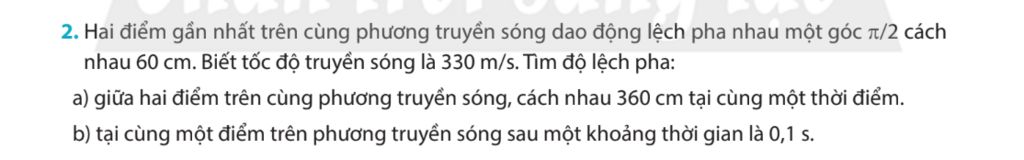 Vậy tại cùng một điểm trên phương truyền sóng sau một khoảng thời gian là 0,1 s dao động vuông pha nhau.