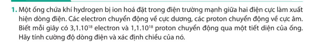 \(I = \dfrac{q}{t} = \dfrac{{ne}}{t} = \dfrac{{3,{{1.10}^{18}}.1,{{6.10}^{ - 19}}}}{1} = 0,496A\)