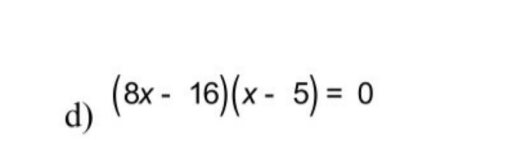 `d) (8x - 16) (x - 5) = 0`
