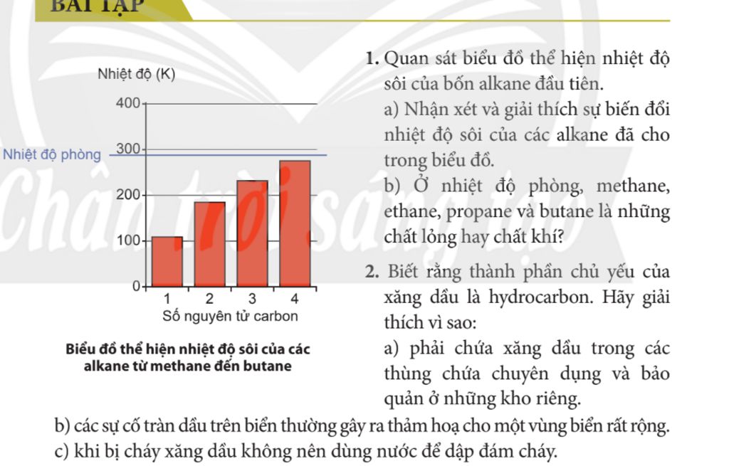 Ở nhiệt độ phòng, methane, ethane, propane và butane là những chất khí vì có số $C \leq 4$