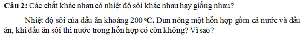 Các chất khác nhau có nhiệt độ sôi khác nhau.