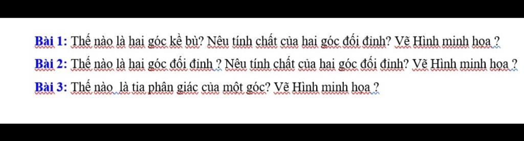 `-`Hai góc kề bù là hai góc có một cạnh chung, 2 cạnh còn lại là hai tia đối nhau.
