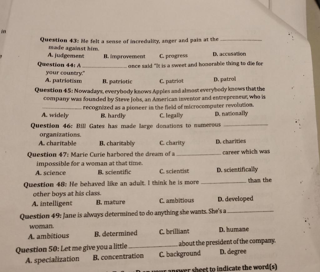 Question 43: He felt a sense of incredulity, anger and pain at the