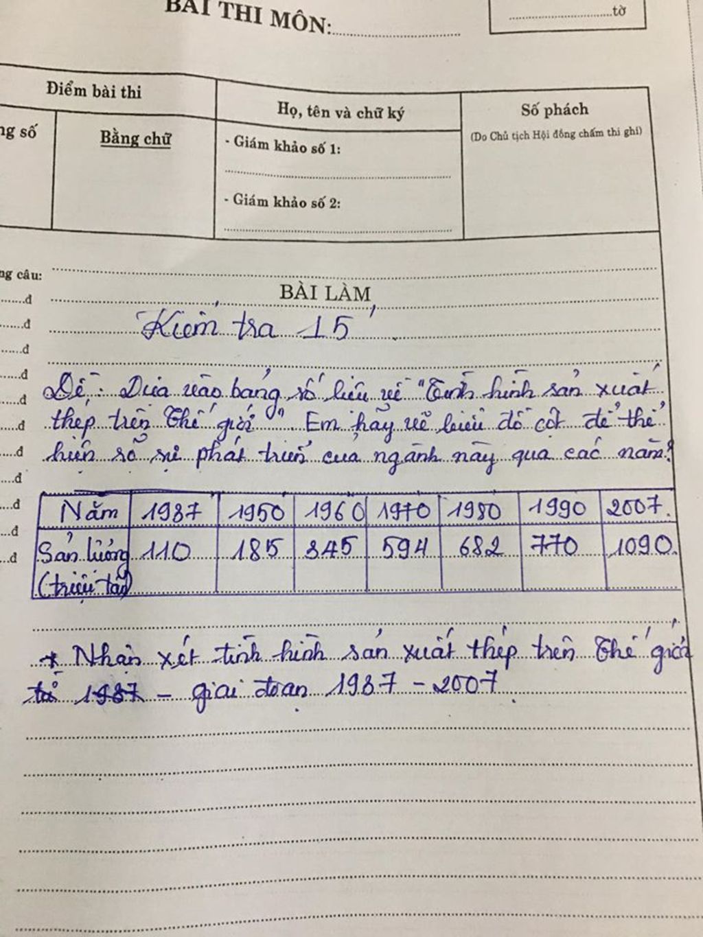 với cả bạn thêm mũi tên ở trục hoành (thêm chữ "năm") còn mũi tên trục tung là "triệu tấn" nhé