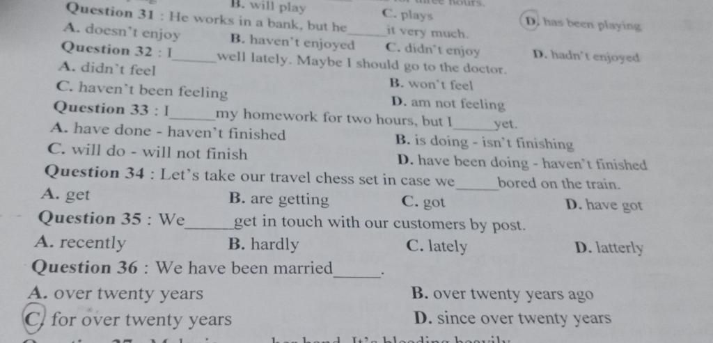`-` Lately : Hiện tại hoàn thành tiếp diễn .