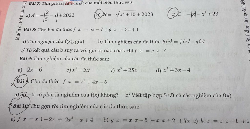 Bài 9: Tìm nghiệm của các đa thức sa ...
