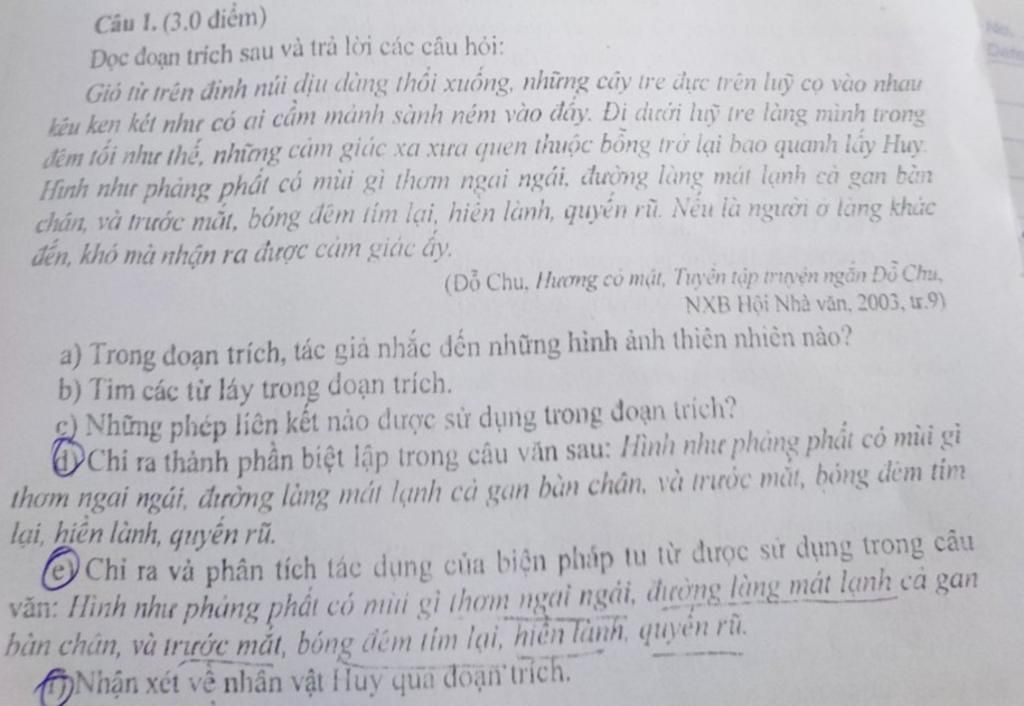 `-` Huy là người có cảm nhận tinh tế , có thể nhận ra được những cảm giác quen thuộc của quê hương