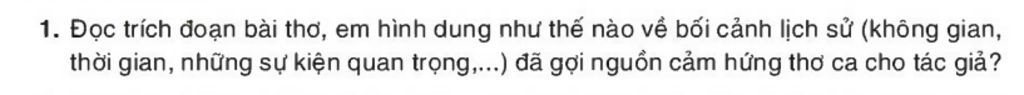 1. Đọc trích đoạn bài thơ, em hình dung như thế nào về bối cảnh lịch sử (không gian, thời gian, những sự kiện quan trọng,...) đã gợi nguồn cảm hứng thơ ca cho tác giả ?