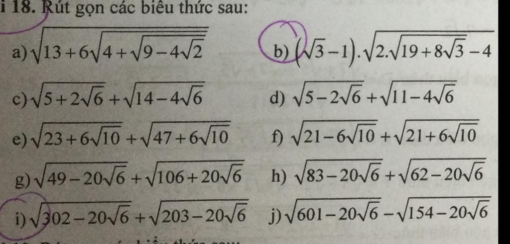 `i) sqrt{302 - 20sqrt{6}} + sqrt{203 - 20sqrt{6}}`