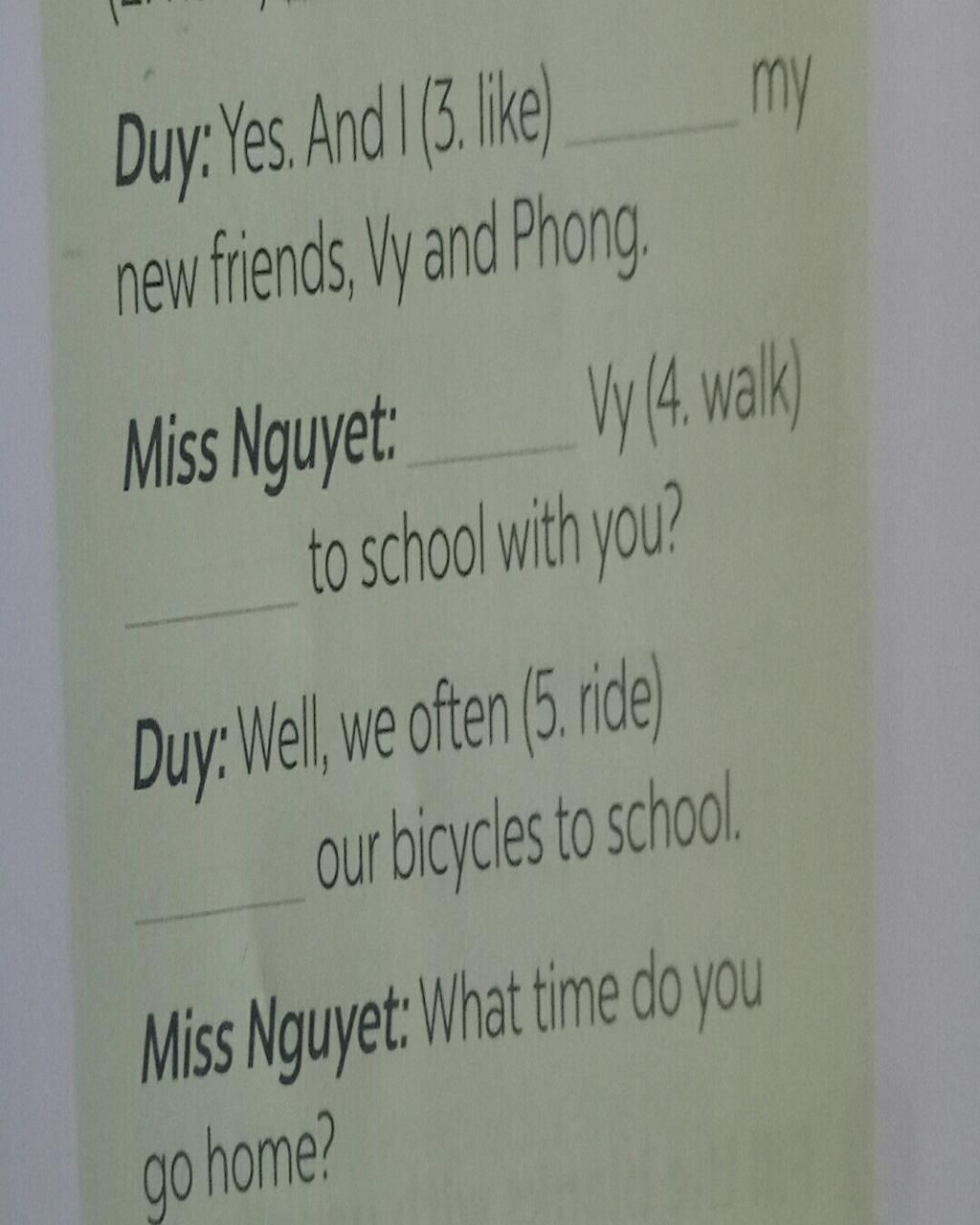 Duy:Đúng vậy. Và em thích những người bạn mới của em, vy và phong