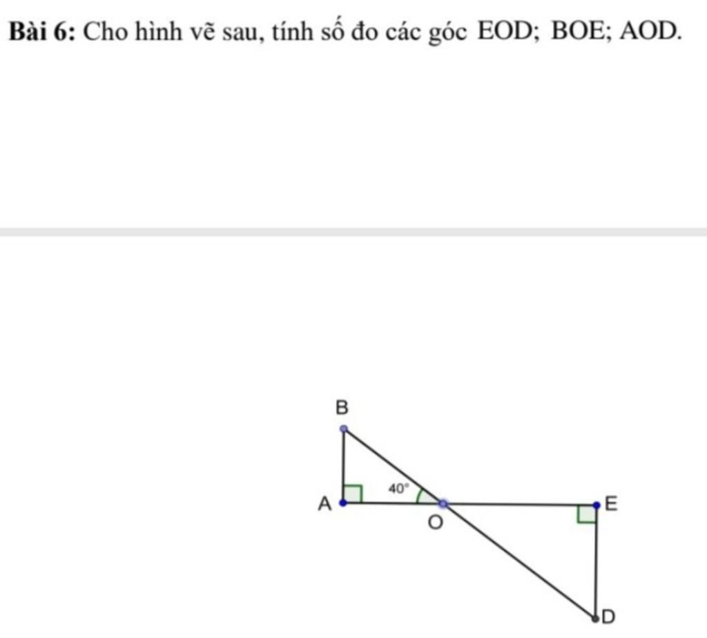 Vì `\hat(BOA)` đối đỉnh `\hat(EOD)` nên `\hat(BOA)=\hat(EOD)=40^@`