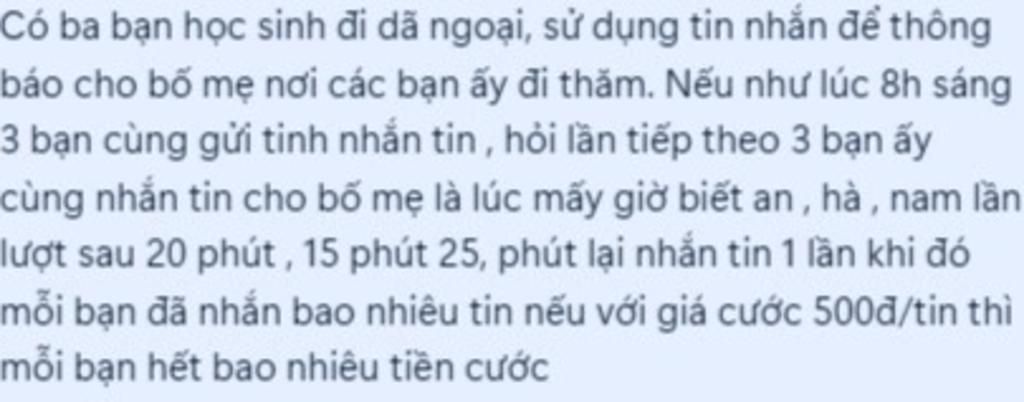 Có ba bạn học sinh đi dã ngoại, sử dụng tin nhắn để thông