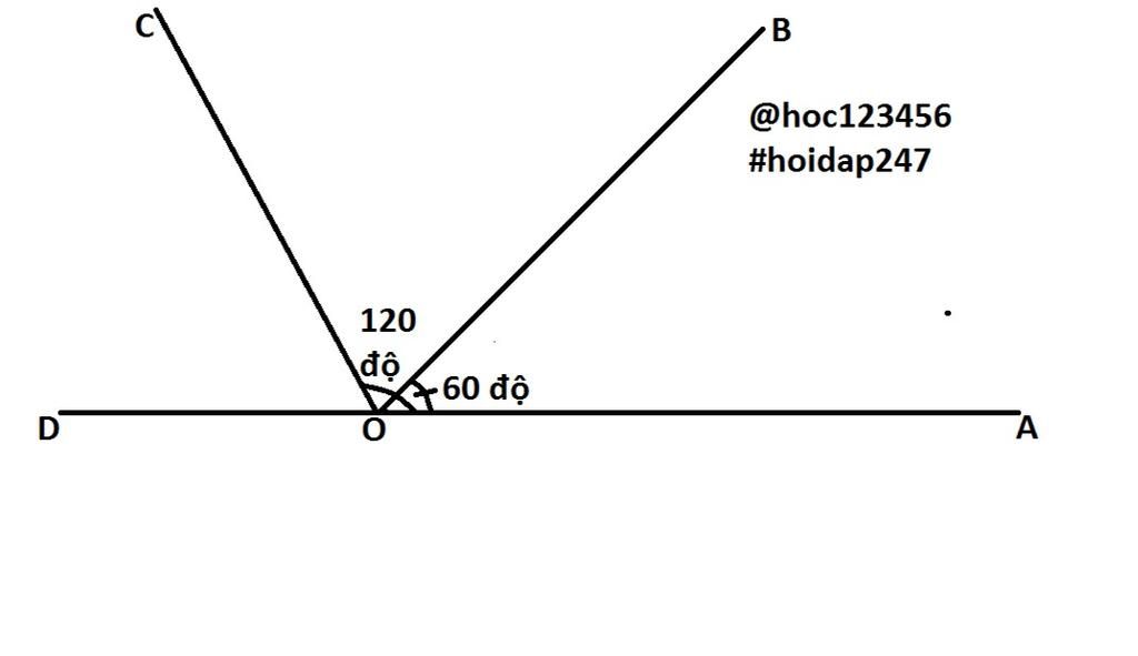 Trên nửa mặt phẳng bờ chứa tia OA, vẽ góc AOB=60°; AOC=120°