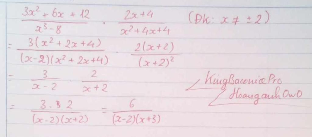 `=(3(x^2+2x+4))/((x-2)(x^2+2x+4)) . (2(x+2))/((x+2)^2)`