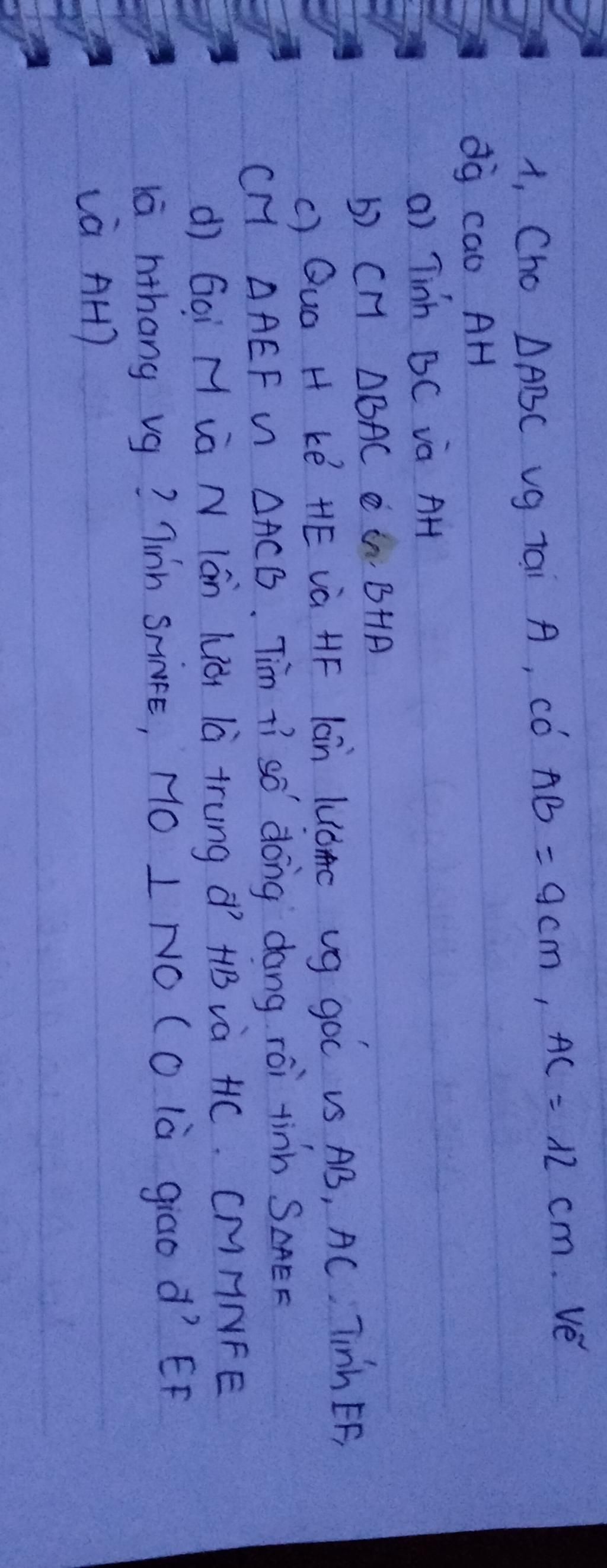 o Qua H kẻ HÈ và HF lần lƯỢNG ug góc vs AB, AC. Tính EF