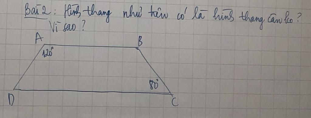 Vậy hình thang `ABCD` không phải hình thang cân.