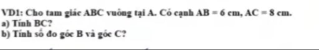 a/ Áp dụng định lí Pitago vào tam giác ABC vuông tại A ta có: