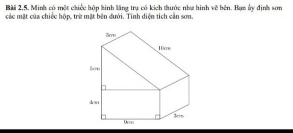Diện tích cần sơn phần hình lăng trụ tam giác là: