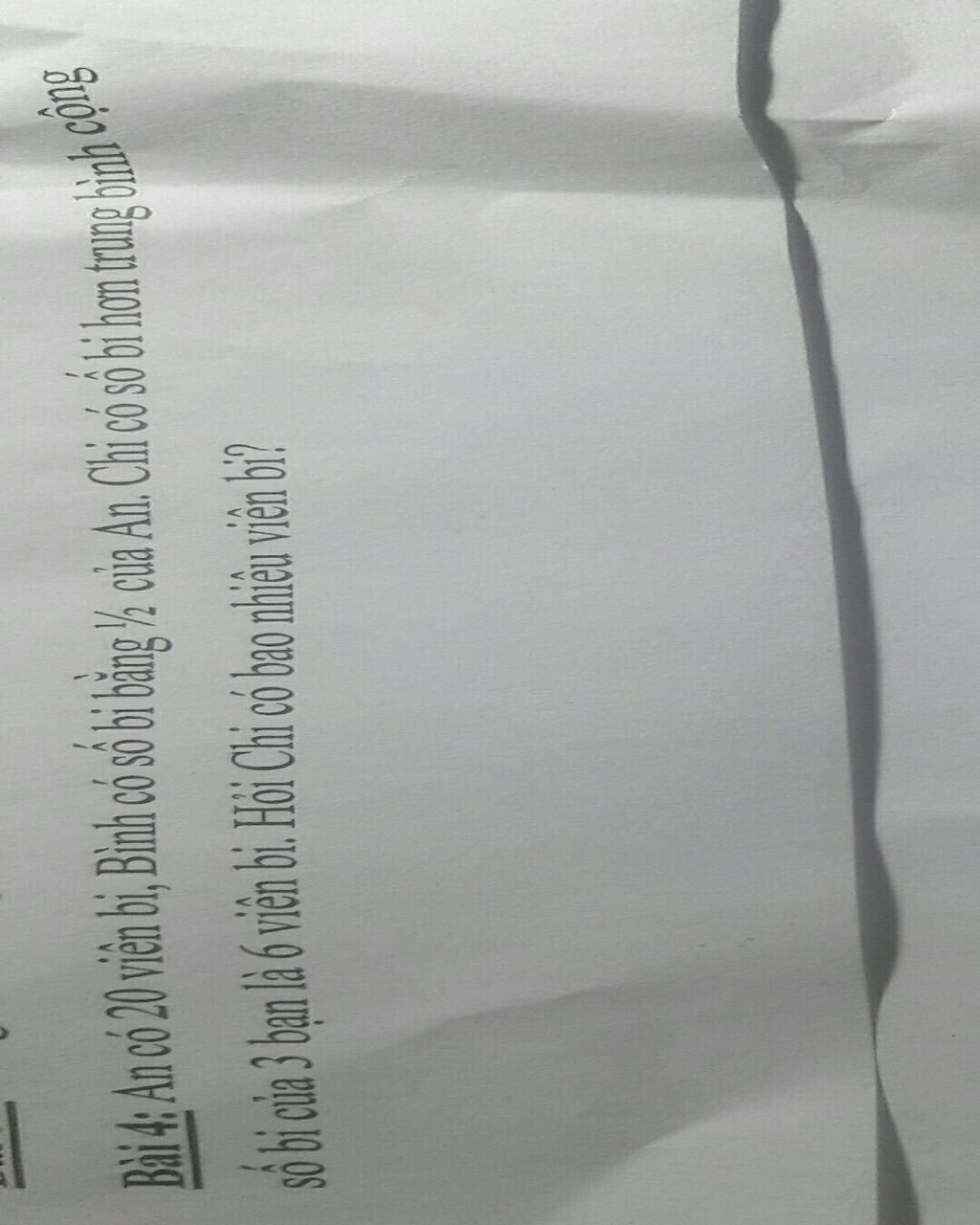 Số bi của Chi lớn hơn trung bình cộng của `3` bạn là `6` viên nên