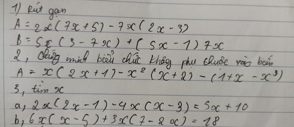 `B = 5x(3 - 7x) + (5x - 1)7x`