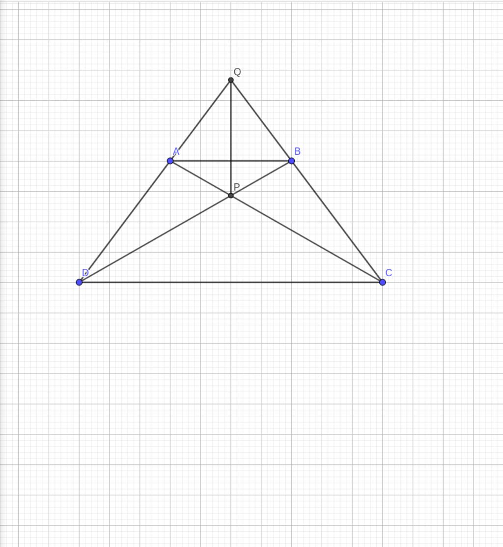 Vì $AB//CD\to \widehat{QAB}=\widehat{QDC}=\widehat{QCD}=\widehat{QBA}\to \Delta QAB,\Delta QCD$ cân tại $Q$