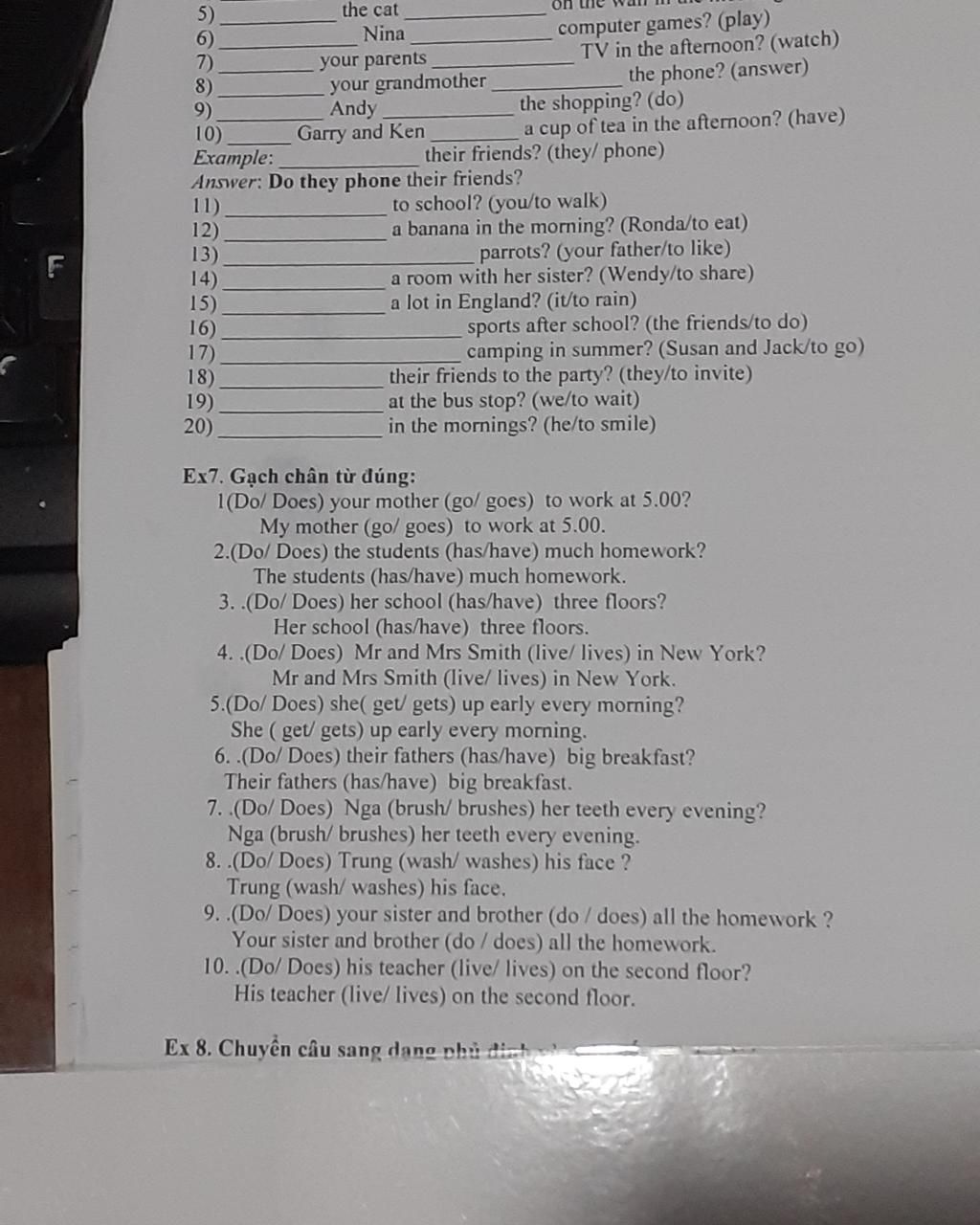 8. Does / wash / washes