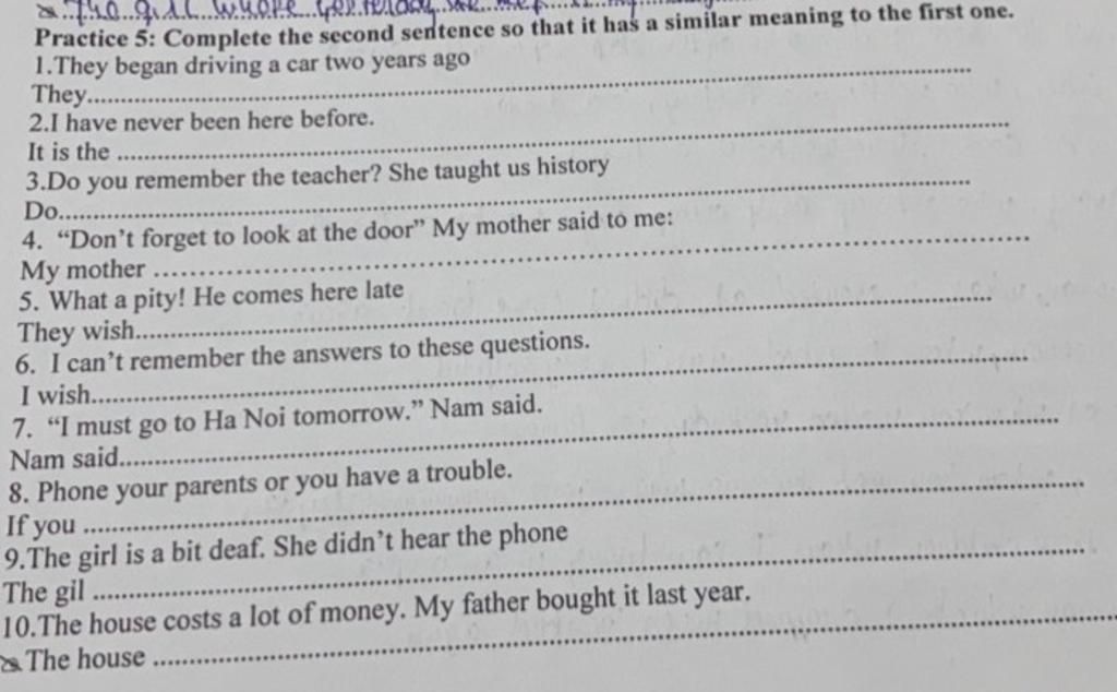 7. Nam said that he had to go to Ha Noi the next day/the following day.