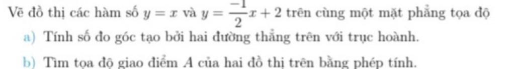 a) Tính số đo góc tạo bởi hai đường thẳng trên với trục hoành.
