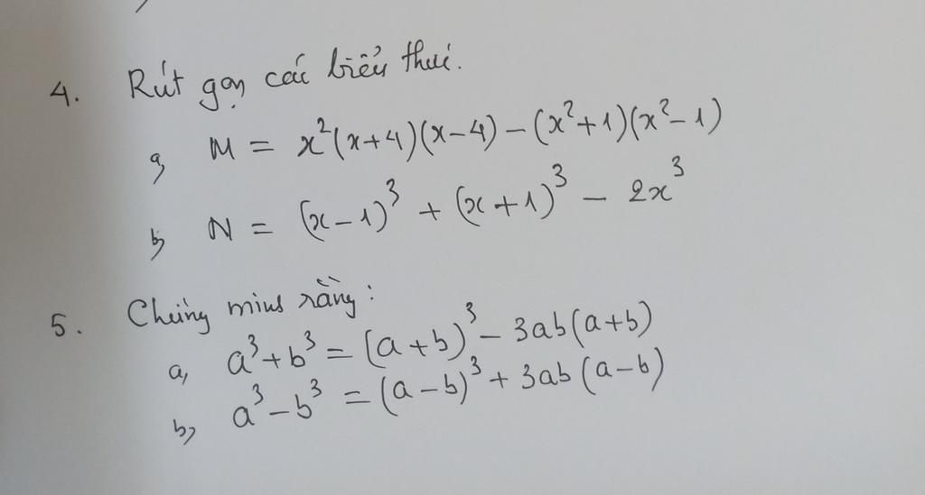 `a)M=x^2(x+4)(x-4)-(x^2+1)(x^2-1)`