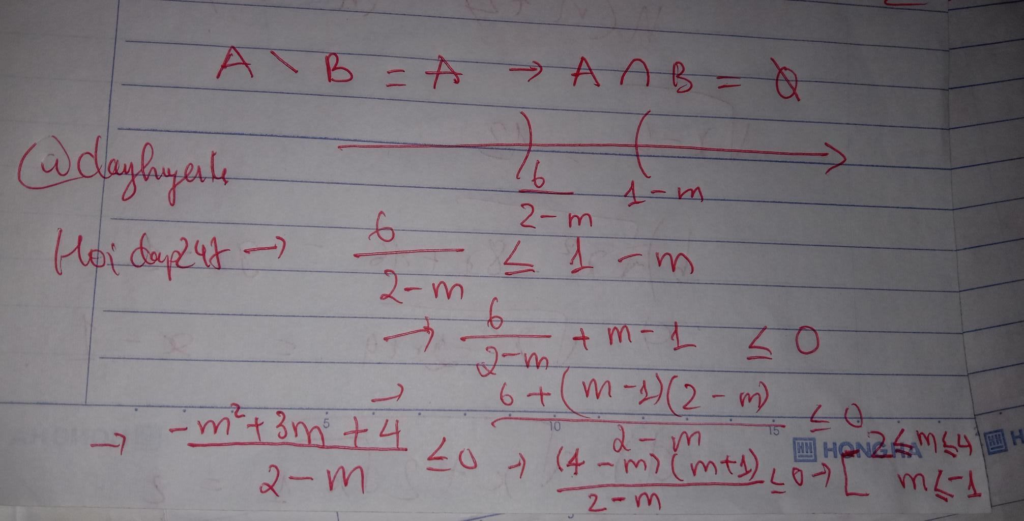 Vậy để `A\B=A` thì `m≤-1` hoặc `m≥4`