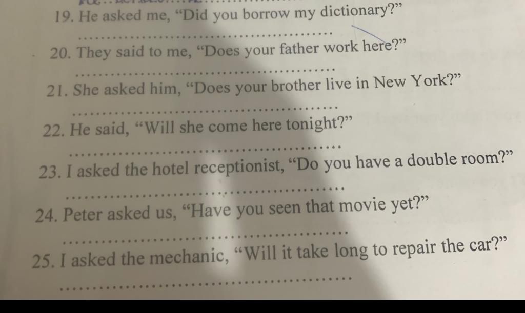 `19.` He asked me if I had borrowed his dictionary.