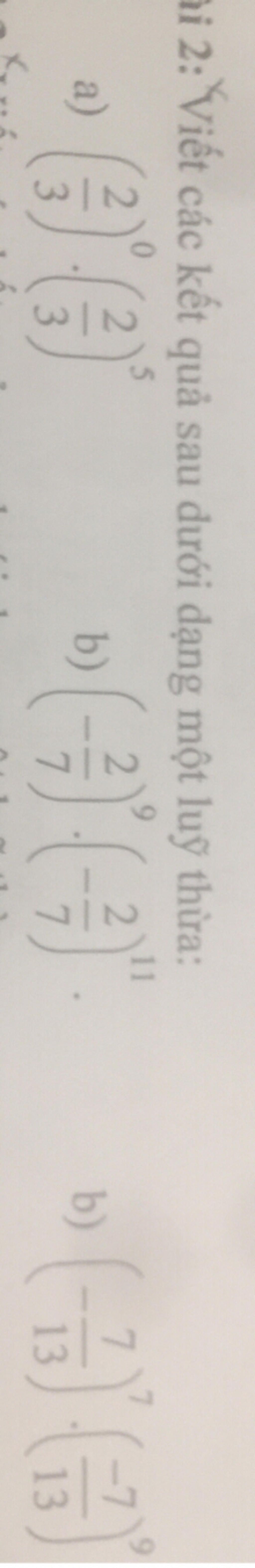 Cách làm:nếu 2 số cùng cơ số ta giữ nguyên cơ số ta cộng số mũ (trong phép nhân)