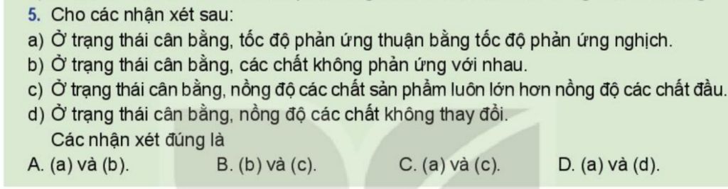 B. Sai vì ở trạng thái cần bằng, các chất vẫn có thể phản ứng với nhau