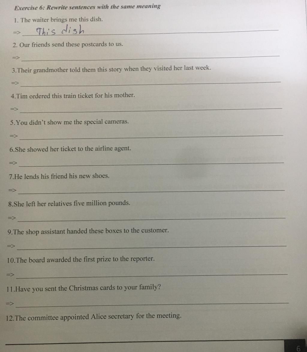 1. This dish is brought to me by the waiter.