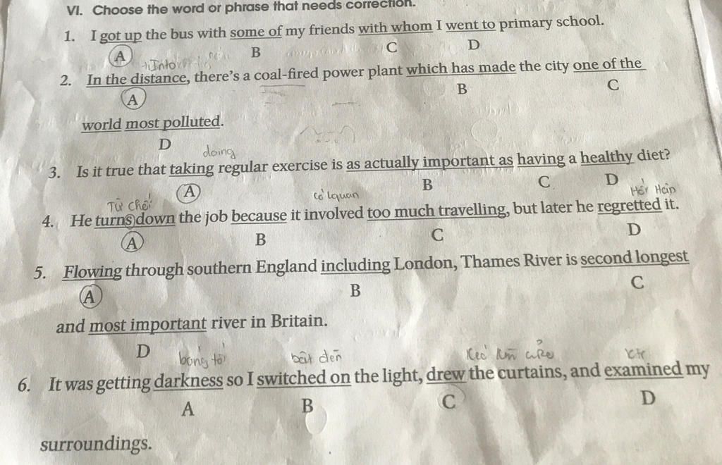 5. C. second longest -> the second longest => Khi có số thứ tự như First, second, third thì nên thêm "the" phía trước nó nhá.
