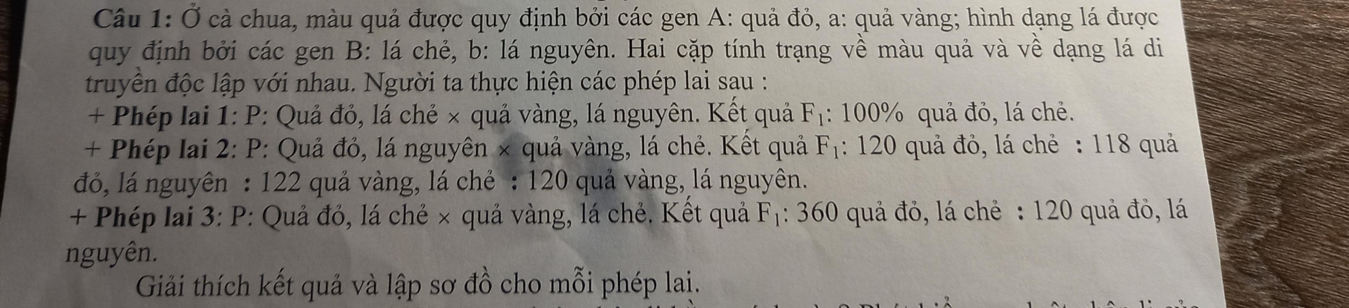 Quả đỏ / Quả vàng = ( 120 + 118 ) / ( 122 + 120 ) ≈ 1/1