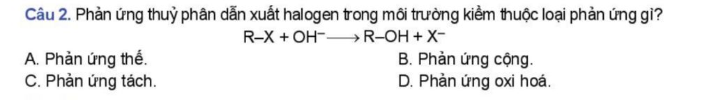 Phản ứng làm thay thế nhóm $X$ của $RX$ bởi nhóm $OH$ nên phản ứng trên là phản ứng thế.